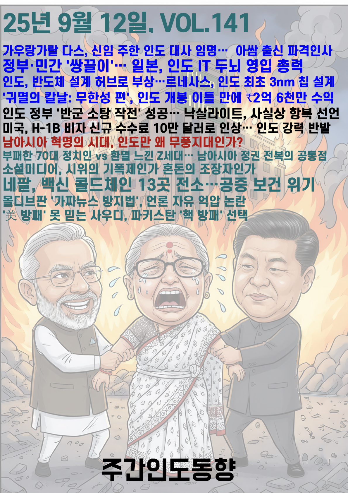 ►최근 네팔에서 발생한 Z세대 주도 시위로 총리가 사임하면서, 2022년 스리랑카, 2024년 방글라데시에 이어 남아시아 지역에 정권을 전복시키는 청년 주도 혁명이 확산되고 있다는 분석이 제기된다.