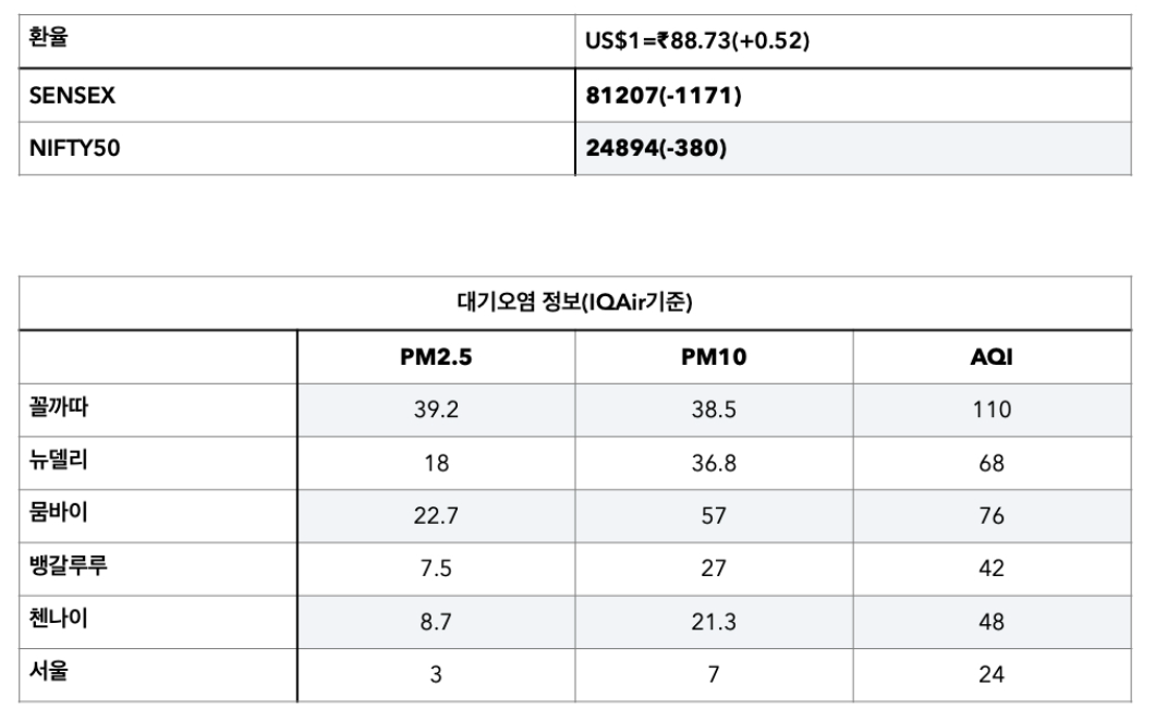 ► 블룸버그집계에 따르면, 연초부터 26일까지 해외 투자자의 인도 주식 순유출액은 US$168억 에 달했다. 특히 3분기(7월-9월)에 매도세가 가속화됐다.