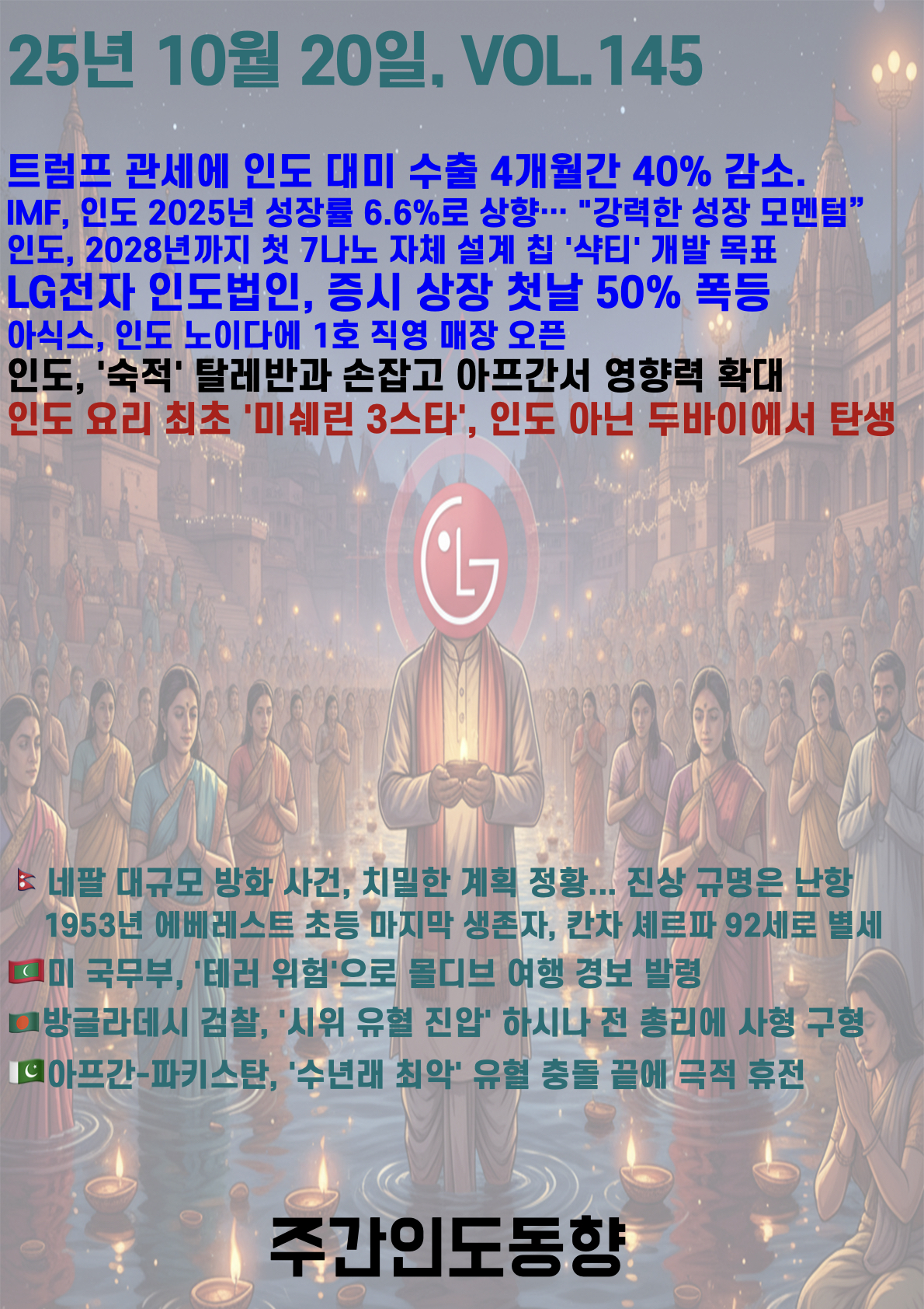 ►IMF는 이번 상향 조정이 견고한 민간 소비에 힘입어 예상보다 높았던 2025년 4~6월 GDP 성장률(7.8%) 등 강력한 성장 모멘텀이 반영된 결과라고 설명했다. 이러한 성장세가 미국의 대인도 제품 고관세 부과에 따른 부정적 영향을 상쇄할 것으로 분석했다.