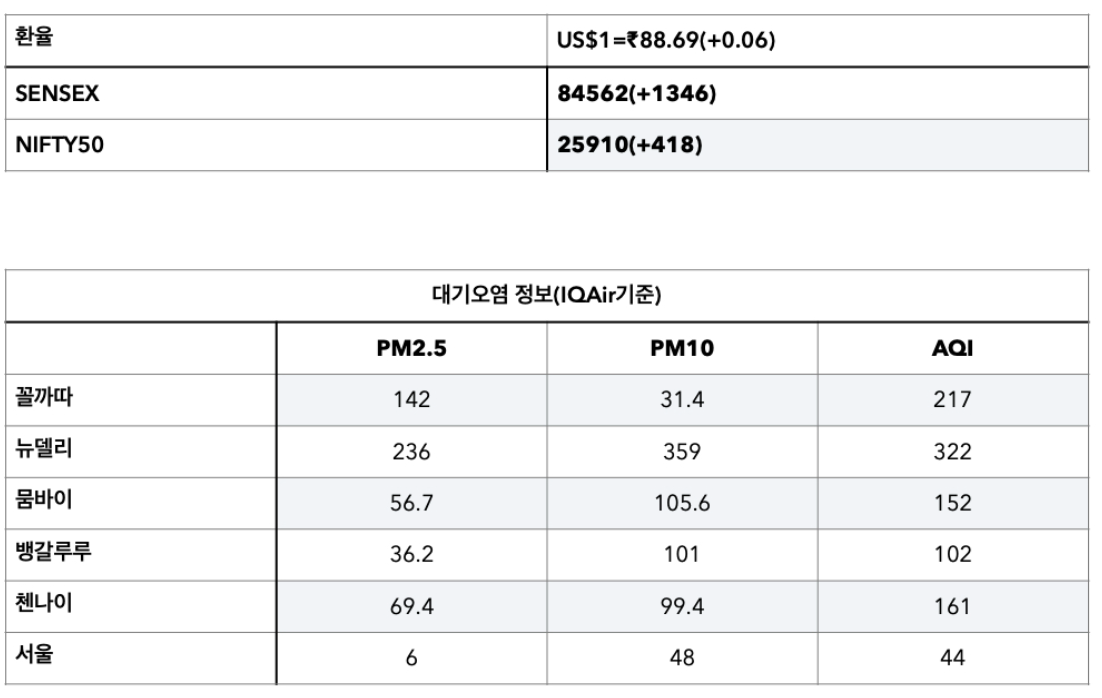 ►인도 증시는 10월 센섹스 Sensex 지수가 월간 4.5% 상승하며 회복세를 보였고, 외국인 투자자도 4개월 만에 순매수로 전환했다. HSBC는 센섹스 지수의 2026년 말 목표치를 94,000(현시점 대비 약 13% 상승)으로 제시했다.
