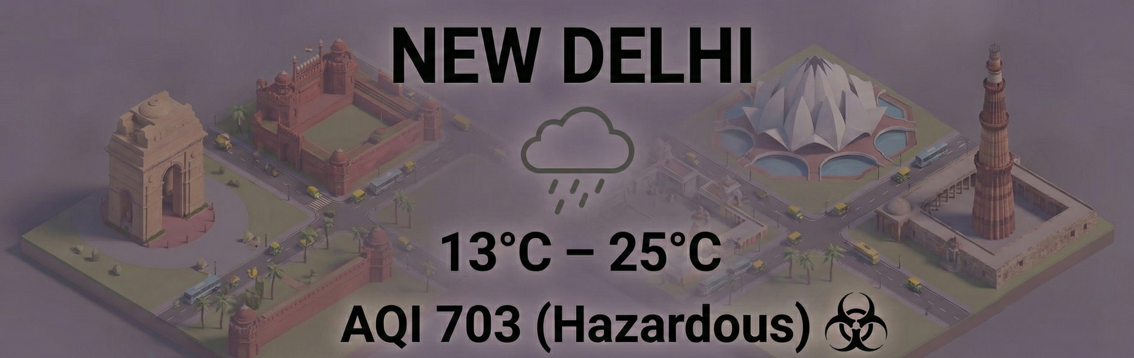 ►델리의 공기질지수 AQI는 금요일 저녁 349에서 토요일 오전 401로 급등해 심각 Severe 단계로 재진입했다. 이는 낮은 풍속과 대기 정체 등 불리한 기상 조건이 오염 물질의 확산을 방해한 데 기인한다.